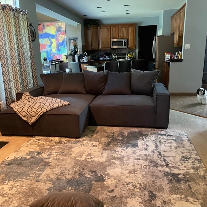 Say hello to your new weekend plans. The product is built for binging your favorite shows for hours on end. This oversized two-piece sectional combines Home by Sean and Catherine Lowe’s signature deep-seated comfort with the modern clean lines that Home by Sean & Catherine Lowe customers love. Madison’s solid wood frame and soft and durable fabric make this the perfect sectional for families or those who love to entertain.