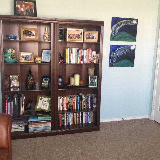 - Matching bookcases have three adjustable shelves for versatile storage and two fixed shelves for stability; each shelf supports up to 25 pounds