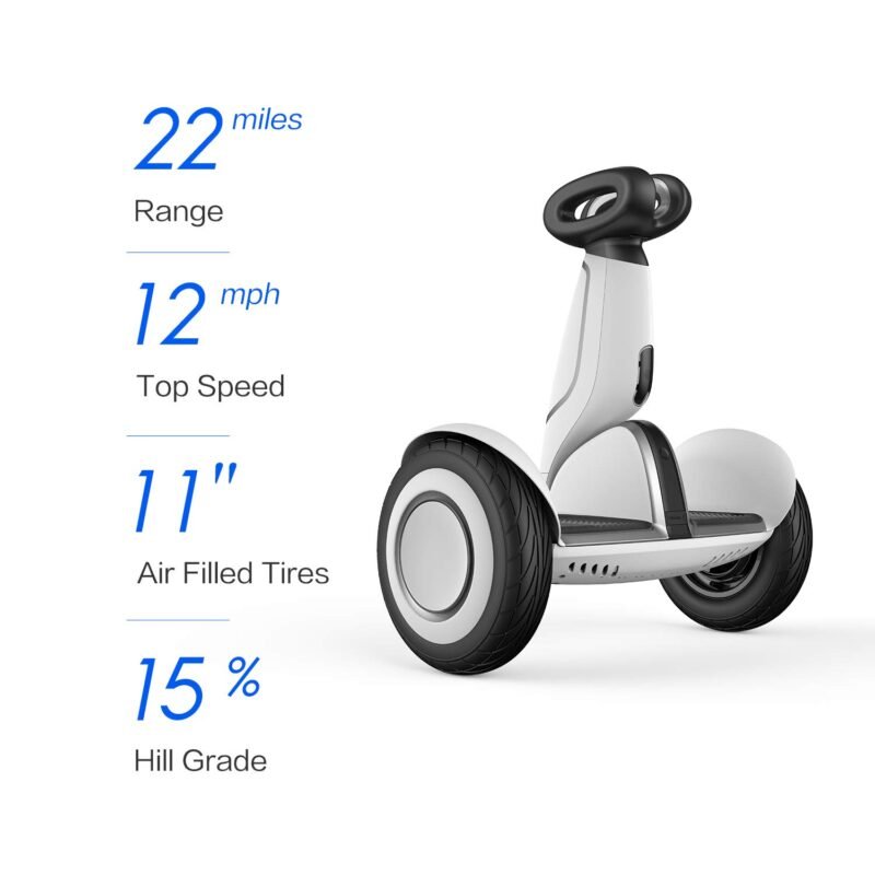 Sturdy & Powerful: With the powerful dual motors of 400W, the Segway S-Plus can reach a max speed of 12.5 mph, travel up to 22 miles and accommodate a max load of 220 lbs after a single full charge. Ride your Segway S-Plus to enjoy the beautiful scenery