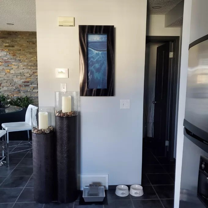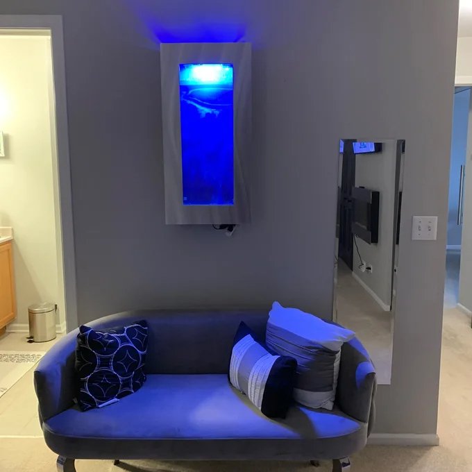 Make your fish a focal point in your home with this wall-mounted aquarium tank, perfect for sprucing up a tall and narrow space on your wall. Brimming with a modern flair, this rectangular metal fixture features a clear glass freshwater tank that can hold 4 gallons of water. An included submersible filter helps your fish stay healthy and happy, while an LED light fixture shines a spotlight on them as they swim around. For even more function, mounting brackets, hardware, and fishnet are included.