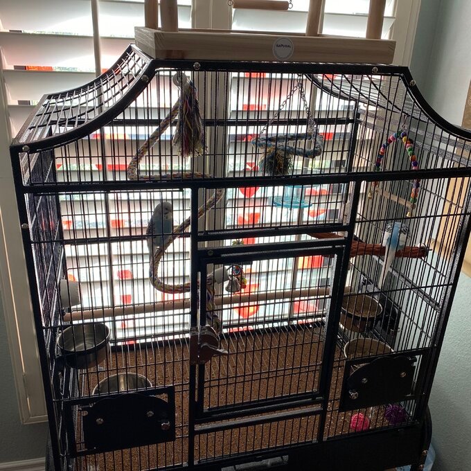 Need a new spot for your flying friend? This birdcage is the perfect pick. With a scalloped shell victorian design, this floor birdcage will look great in any room. Its large front doors allow for easy access, while its safety latch will keep them secure after closing so your birds stay put. The slide-out grill and tray make cleaning a breeze, and the single perch will let your bird rest comfortably. Fifty-five inches tall and twenty-eight inches wide, this iron cage can host a parakeet-sized bird.