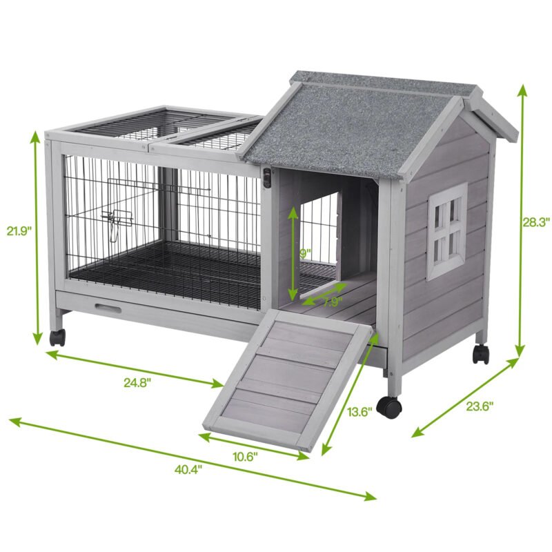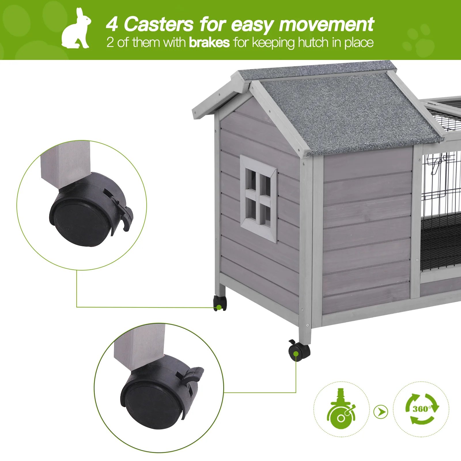 • Bunny cage comes with four wheels. Two are lockable to hold it in place unique design quality lock to prevent predators. Keep high safety for your pets.