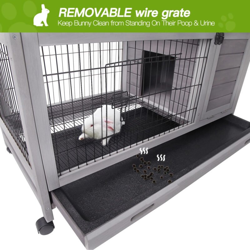• Removable metal wire floor above the tray to avoid standing on their poop and keep the rabbit safe when pulling out the drawer