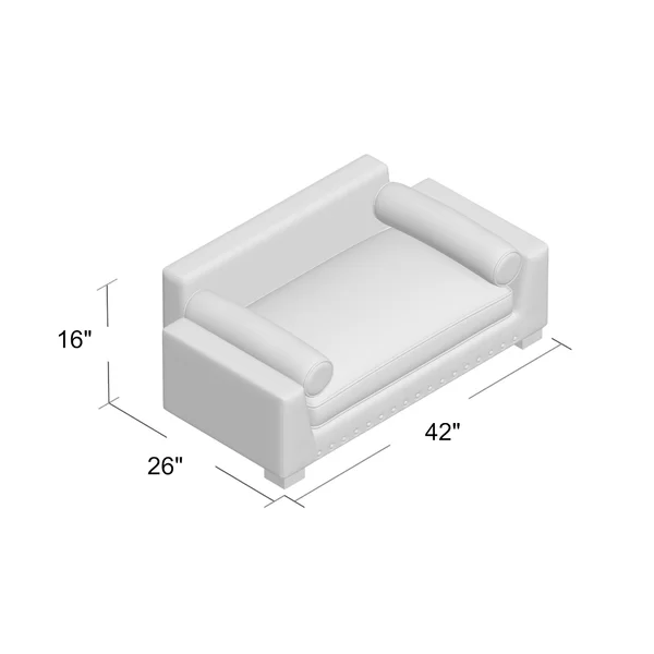 Ollie, a 30-pound Italian waterdog, is lounging on the product. This modern lounge features pebble faux leather with nailheads. Its ultra-plush cushion and two bolster pillows for lounging make it super comfortable.