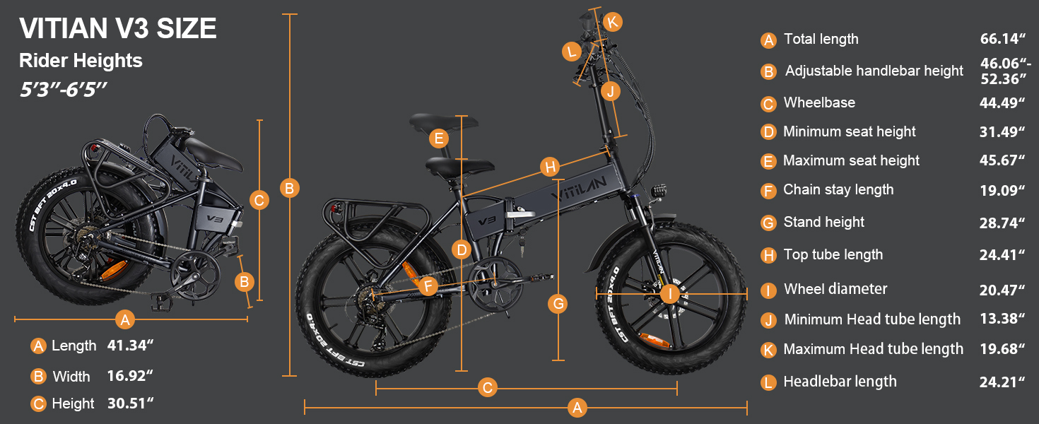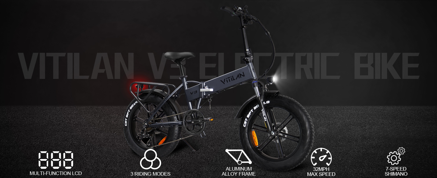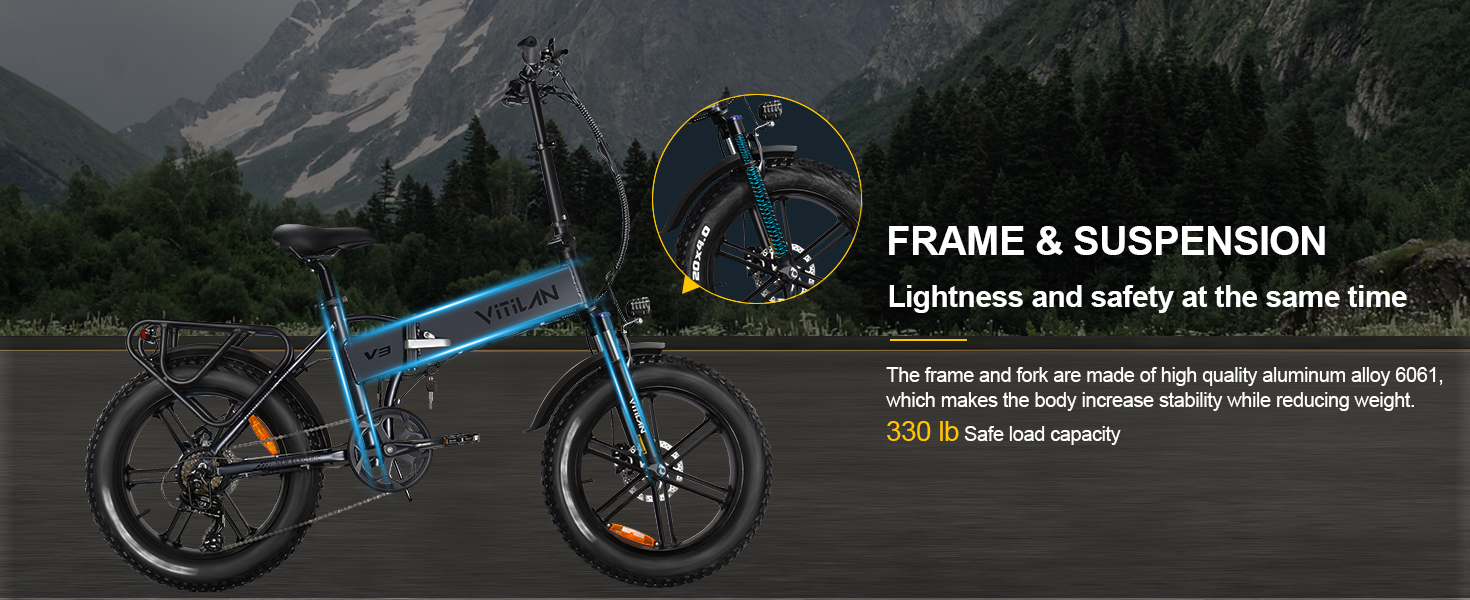 【Faster and Easier】V3 electric bicycle adopts 6061 aluminum alloy frame, mechanical lock aluminum alloy front fork and adjustable seat and handle design, which can adapt to different heights and riding styles, bringing an excellent riding experience . With a lightweight and efficient design, aluminum alloy 20-inch wheels are suitable for urban and off-road environments in good road conditions