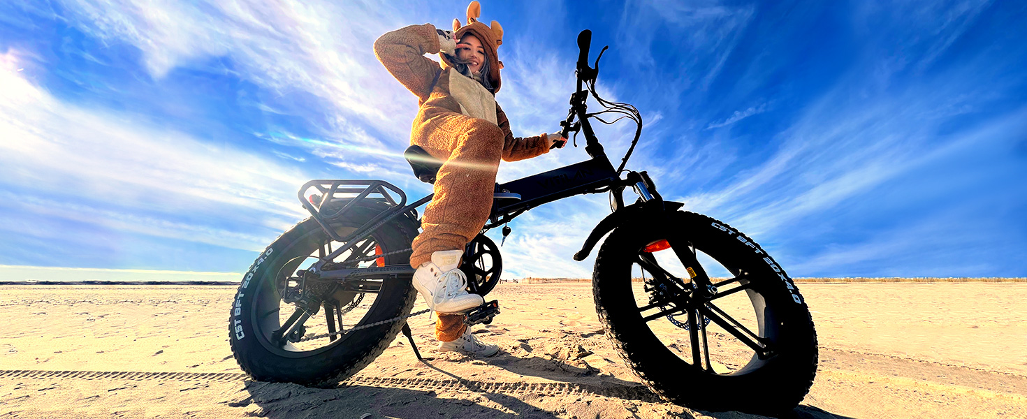【Mechanical & Shimano Gear System】This fat tire electric bicycle is equipped with front and rear disc brakes, and adopts mechanical disc brake to make the braking effect better. Mechanical disc brake can make the braking effect more linear without a sudden feeling, and feel better and more advanced .7 Speed gear increases hill-climbing power, further range variation, and greater terrain adaptability.
