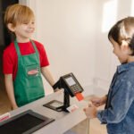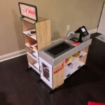 Shopping and playful purchasing are exciting at the sturdy wooden fresh mart Grocery store! This Grocery Kitchen Set is free-standing play space with smooth, curved corners and edges lets customers three and older browse the shelves and pay for purchases on one side, and allows the grocer to ring up items on the other. Realistic features include beeping “scanner,” a hand-crank conveyor belt, a card-swiping machine, a keypad/calculator, and cash drawer. Kids are sure to find everything on their shopping list at this friendly neighborhood grocery store!