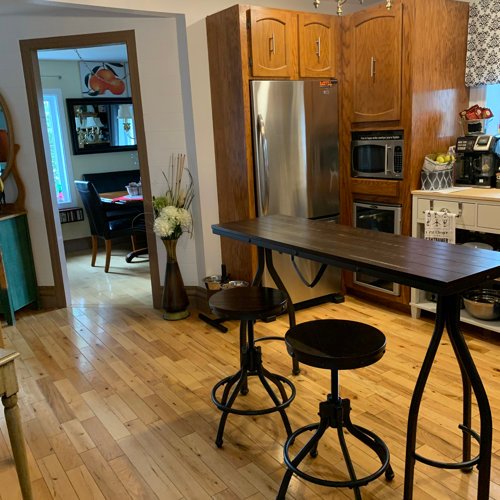 This dining set is the perfect option for your dining room and open-concept, eat-in kitchen. It’s built on a rustic metal base in a powder-coated dark bronze finish that lends loft-worthy style to your space! The adjustable-height dining table features curved legs and threaded column support. And the wood tabletop features a planked surface for an industrial vibe that can seat up to guests. Plus, each chair echoes the adjustable aesthetic with its crank handles and lockable seats.