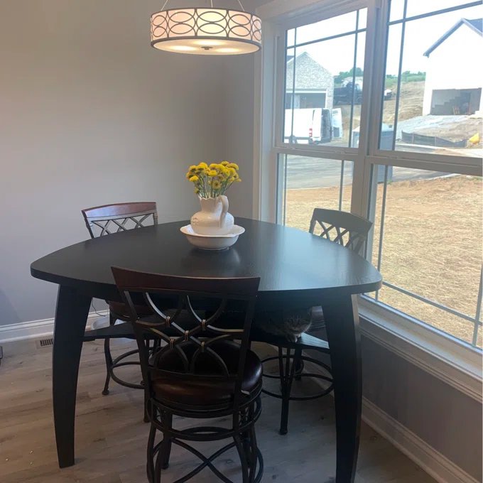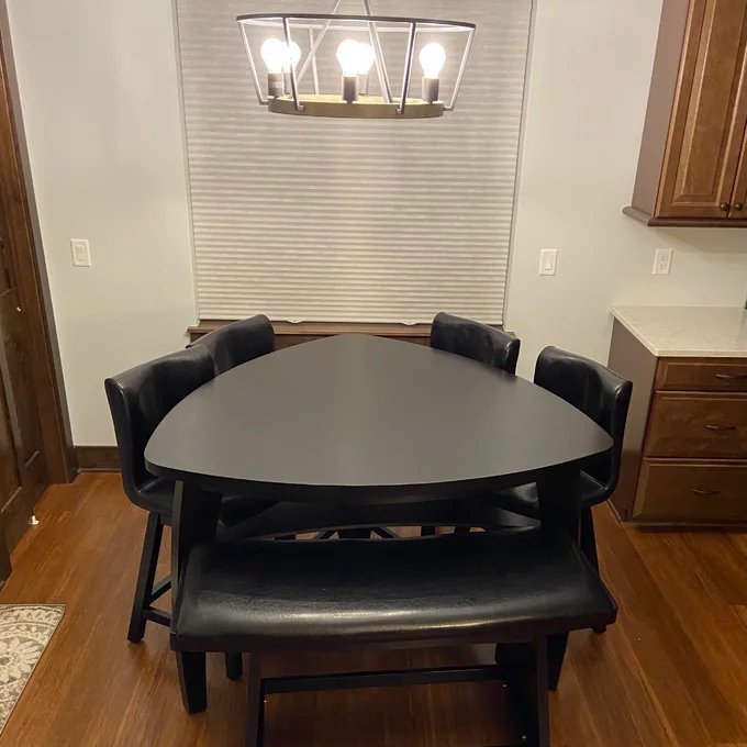 Q:”Is the full set the leatherette on chairs and bench is black?” asked by Amy