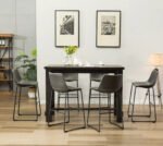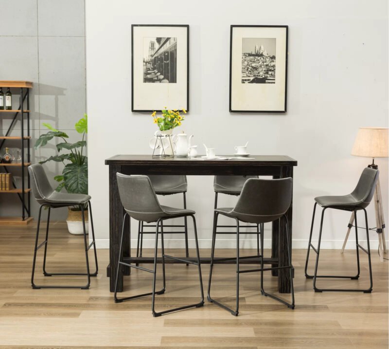 Inspired by the sheer simplicity and weatherworn beauty of primitive furniture, this 7Bamey 7 – Piece Bar Height Rubberwood Solid Wood Dining Set brings a relaxed sense of style into your space. It provides seating for up to 6 people, making it a versatile option that can accommodate both your family and guests. Enjoy cozy, intimate dinners and gatherings around this dining table. These dining chairs offer a sculpted seat/ back design and are upholstered in soft smooth PU with a black metal frame. This style is available in dining height, counter height, and bar height.