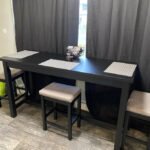 - As a neutral pallet for your decorative preference, the collection features a black finish, with the neutral gray tone of the barstool’s seats providing a subtle accent.