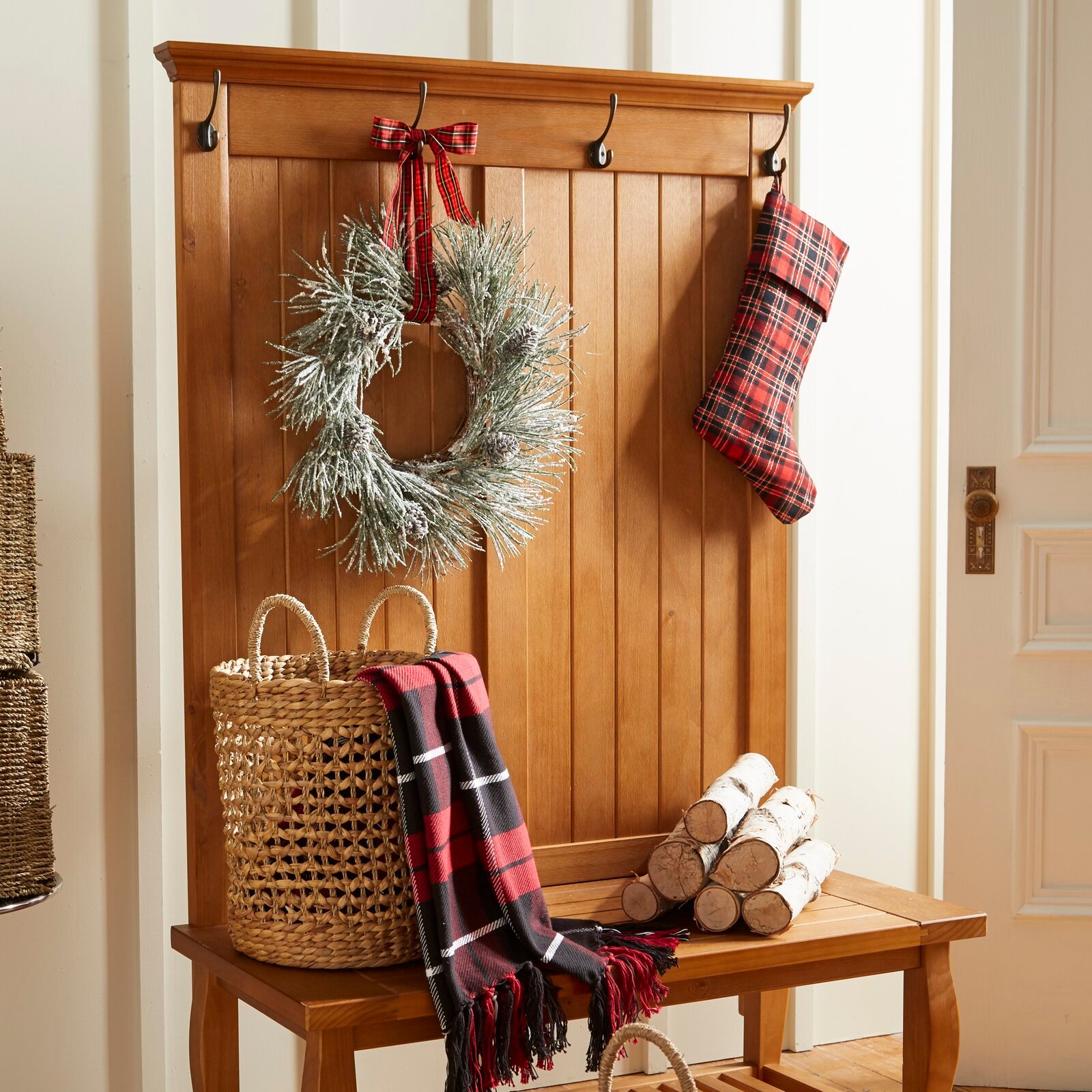 Sick of picking up coats that have been carelessly flung around the house? Instead of telling the kids where their jackets go, show them with this hall tree! Crafted from solid pine, it features paneled details and a slatted bottom that imbue your entryway with traditional charm. For storage, an open shelf down below makes a perfect perch for shoes, while four hooks – capable of holding ten pounds each – provide space for jackets, scarves, and more.