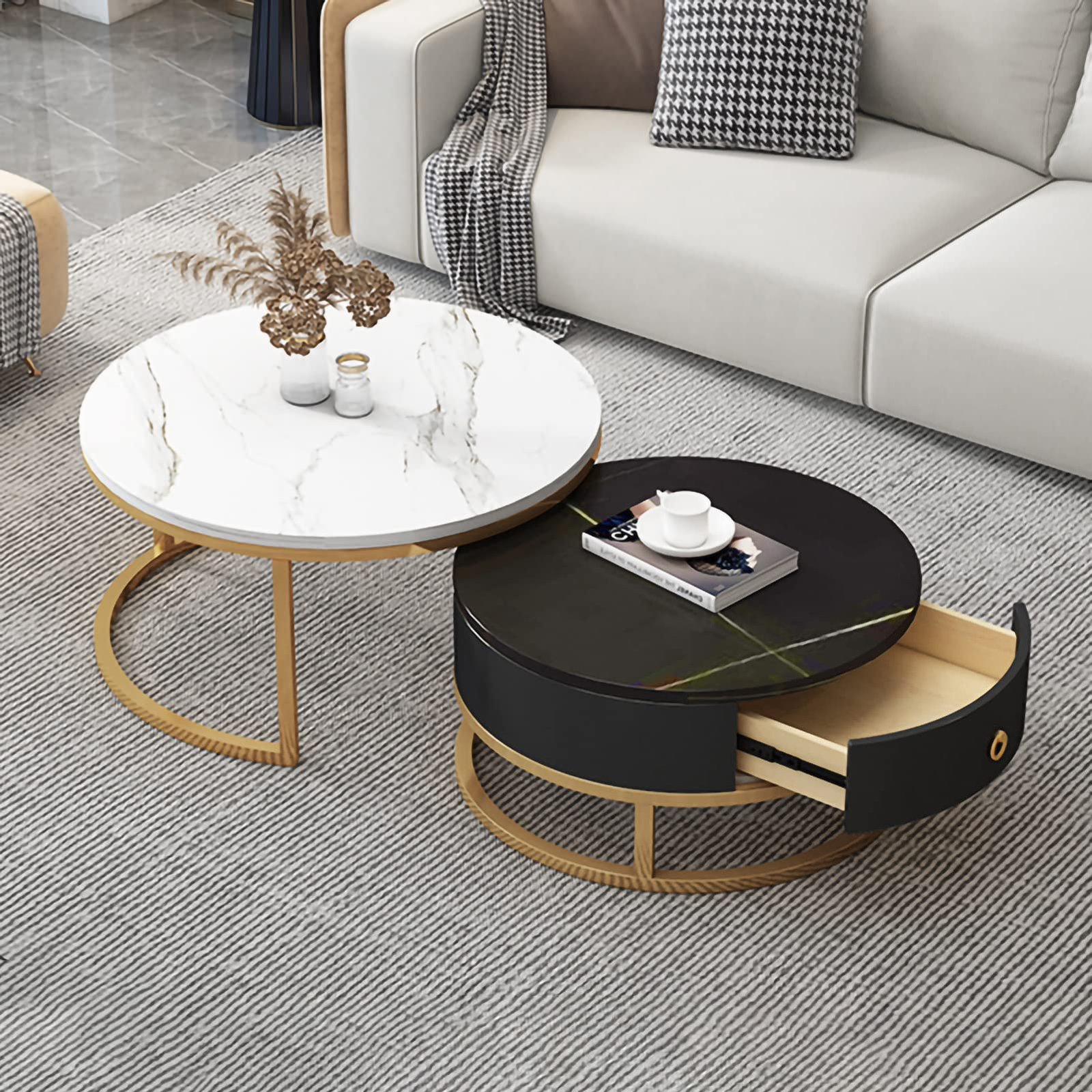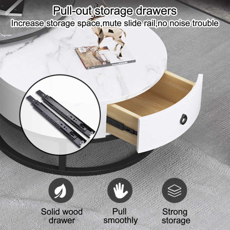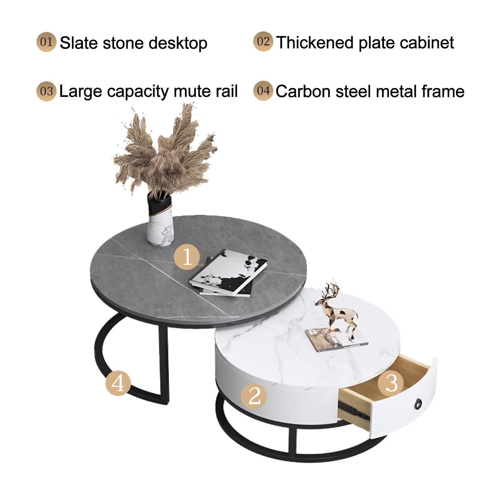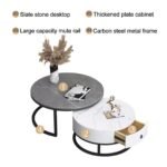 【Durable and Stable】Living room round table is made of hard rock slab and powder coated metal steel frame.This table set is built to withstand long-term use,ensuring your living room set will always look good.The slate top of the nesting coffee table is heat-resistant and scratch-resistant and easy to clean,and stains can be easily removed by wiping with a damp cloth.