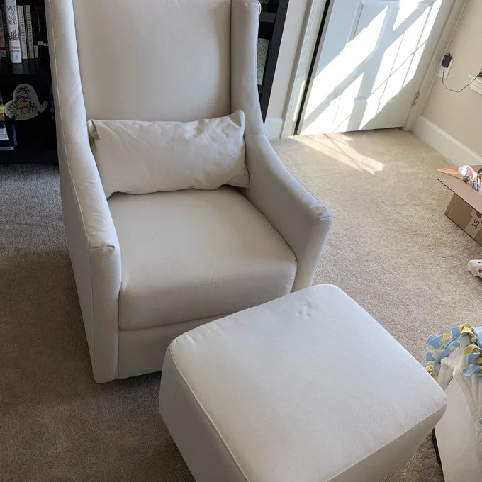 - Put your feet up, rest and relax in the Toco wingback style glider with an included stationary ottoman that’s constructed and upholstered by hand in soft and durable eco-performance fabric.