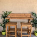 Enhance your patio, poolside space, or backyard with this welcoming outdoor balcony bar set. This ensemble, made of sturdy acacia wood with rustic slats and boasting a lovely finish, will go nicely with your other outdoor furnishings and accessories. Complete with a bar table and two matching stools, this set guarantees plenty of room for food, beverages, and numerous memories in the great outdoors. Entertain in style and enjoy your outdoor space more than ever before with this warm and inviting setting.
