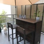 - Storage space: this bar table offers two slat-panel shelves, allowing you to organize your bottles and accessories neatly and discreetly.