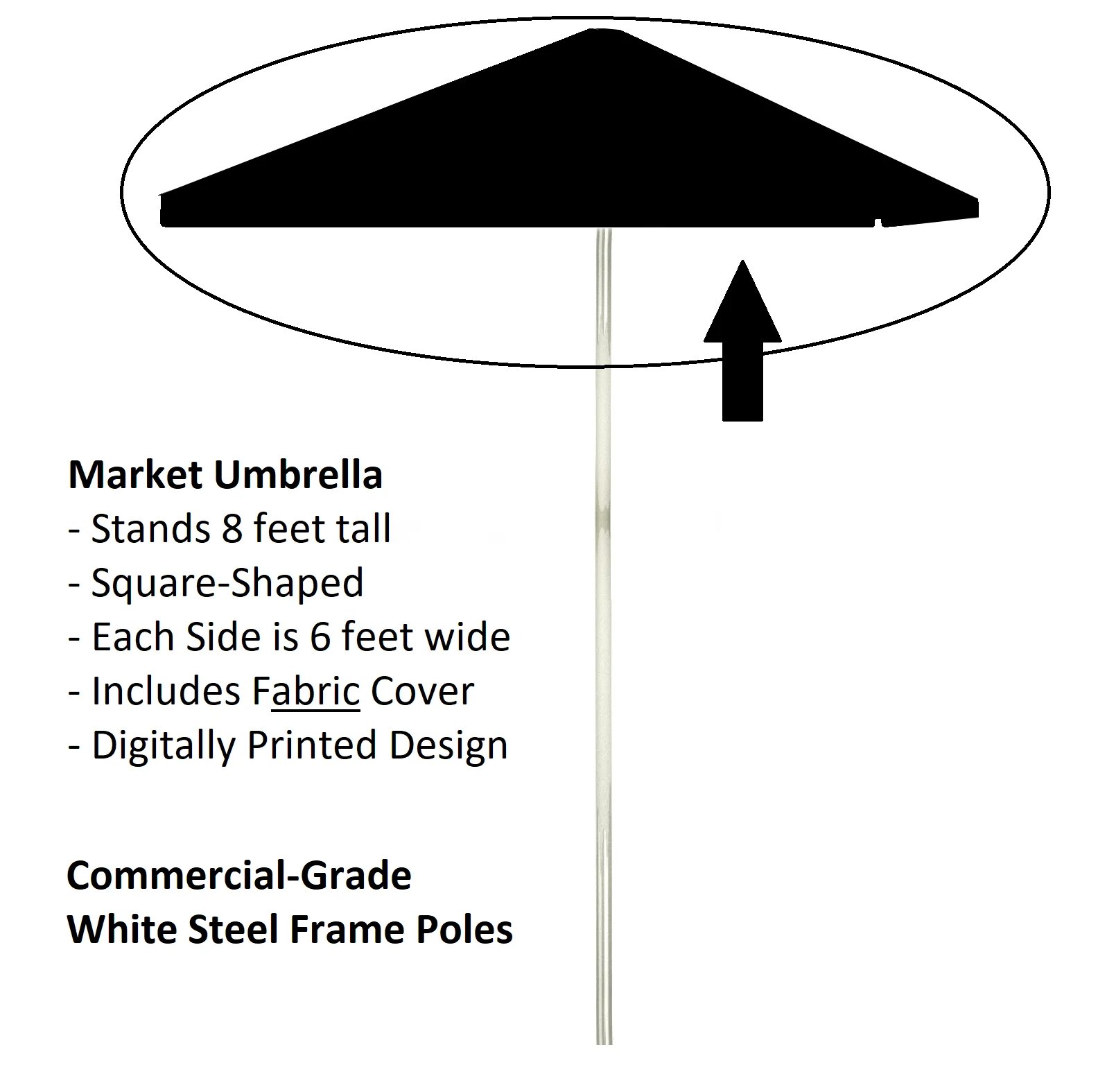 • Open Umbrella Dimensions L- 72″ x W – 72″ x H – 96″