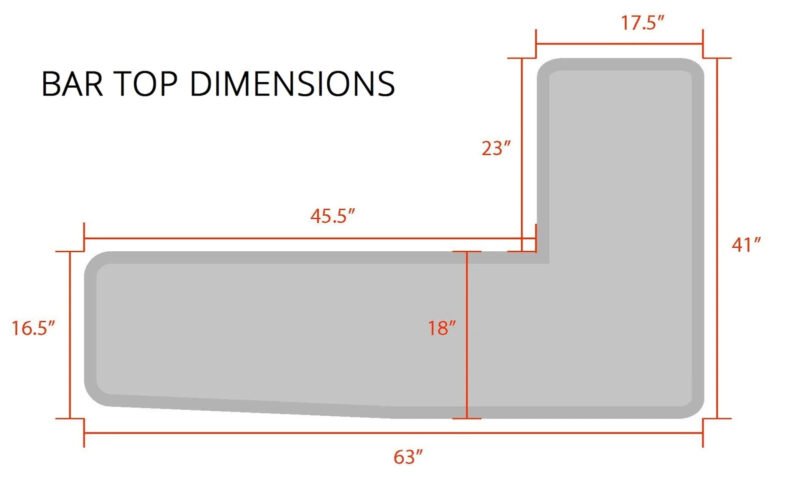 • Pieces Included: Commercial grade steel L-shape frame, a drop-in cooler that holds up to 1 set of 4 padded bar stools with custom printed covers, a palapa (tiki) umbrella, and a deluxe travel bag with wheels