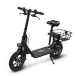 The Phantomgogo Commuter R1 is our new fun-to-ride short commute e-scooter. This electric bike for adults and children ages 12 and up is capable of speeds up to 15.5 MPH and has a 20-mile range on a full charge. This peppy little electric scooter with seat comes equipped with a generous 450-watt motor, 36-volt lithium ion battery, steel rigid front fork, rear disc brake, and 12″ tires on the front and back. To complete the overall convenience that an electric scooter offers, we also equipped the C1 with a rear basket to help keep your hands (or your lap) free.