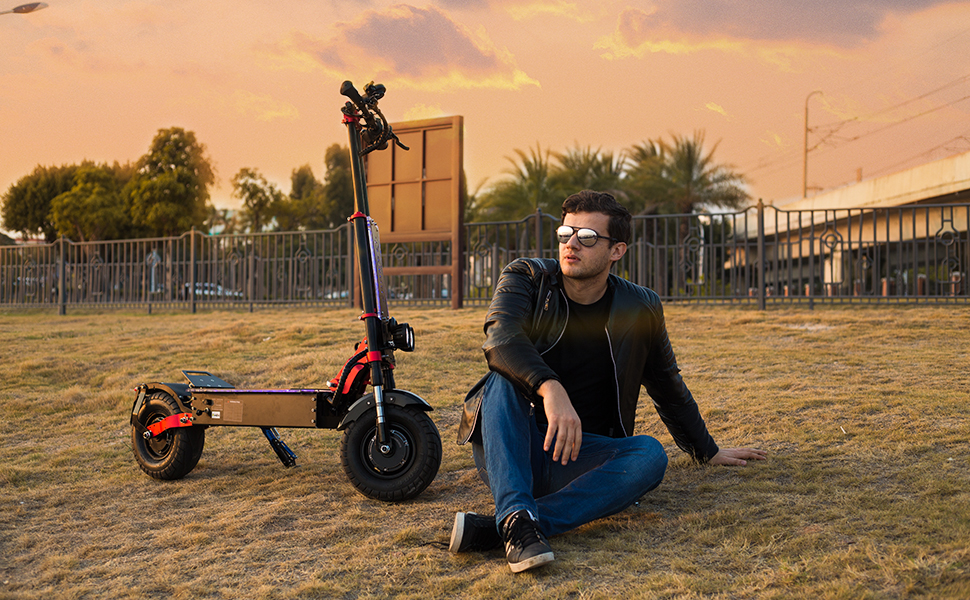 This electric scooter is made of reinforced aluminum alloy all over the body for sturdy performance, excellent acceleration and great power. Our electric scooter uses 13-inch vacuum tires and dual motors with a total power of 8000W, making it the best choice for you no matter what kind of usage scenario.