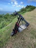 Four-bar body, Double drive, single motor 4000W, total power 8000W, super motor. The maximum speed is 60MPH,90 Mile Long Range Battery, and the maximum capacity is 880 lbs.plenty of power Meet all your needs for speed.It can easily handle 45° steep slopes, with detachable seats for sitting/standing riding, making it an ideal commuter scooter
