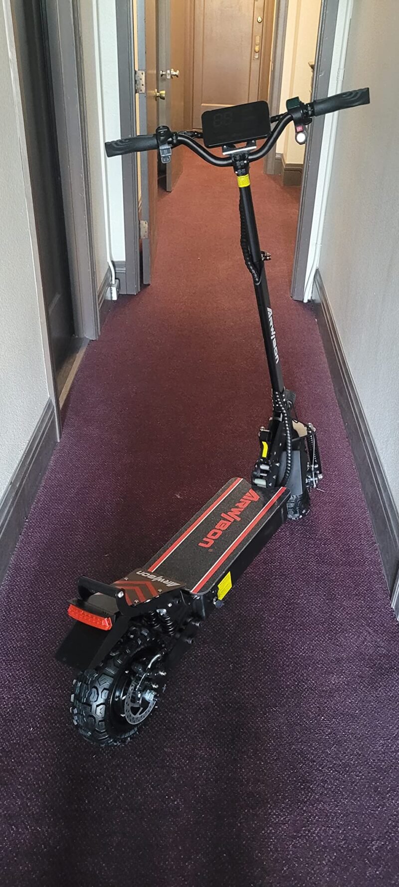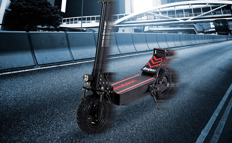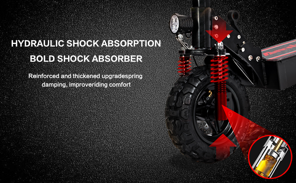 Safe, Comfortable and Style – The 11 ” thickened Heavy Duty Vacuum Off-Road Tires have high elasticity and wear resistance. 160MM disc brakes and EBAS e-brake provide powerful braking force and shorten the braking distance and a wider deck to stay balanced on and the thickened frame structure can load up to 440 lbs.The most popular LCD screen is easy to view. The scooter has ultra-bright front LED headlight, running boards with cool colorful LEDs