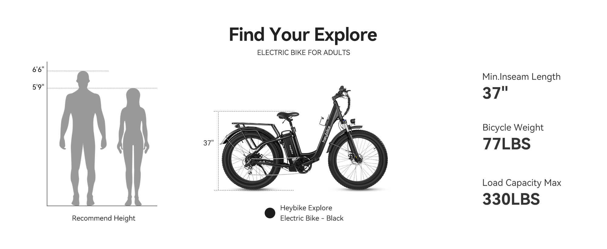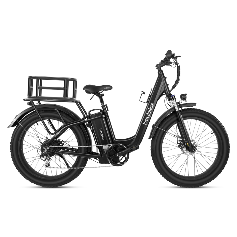 Sturdy Step-Thru Frame – Heybike Explore is designed by the most popular step-thru frame which is easy to lift your leg over the ebike. Sturdy rear rack extend the load capacity up to 120lbs. The extra water bottle holder and a position for installing a front basket (excluding) are design for storage expansion. Bring more possibilities to your trip!