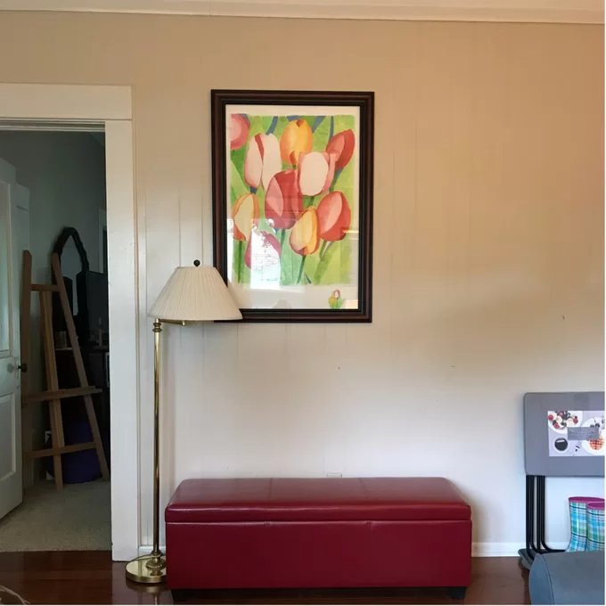 Q:”What shade of red is the ottoman?” asked by Cheryl