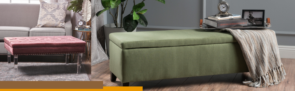 - In most living rooms, space for books, magazines, trays, etc. Is coveted and in short supply. . . . And that list are just the things that are used often, and do not include items that Need to be nearby, such as throws, pillows, or even Board games for family night. If you find yourself relating to this situation, then help is finally here. This storage ottoman is most often used in living rooms, but is also great for the foot of a bed in a master or guest bedroom