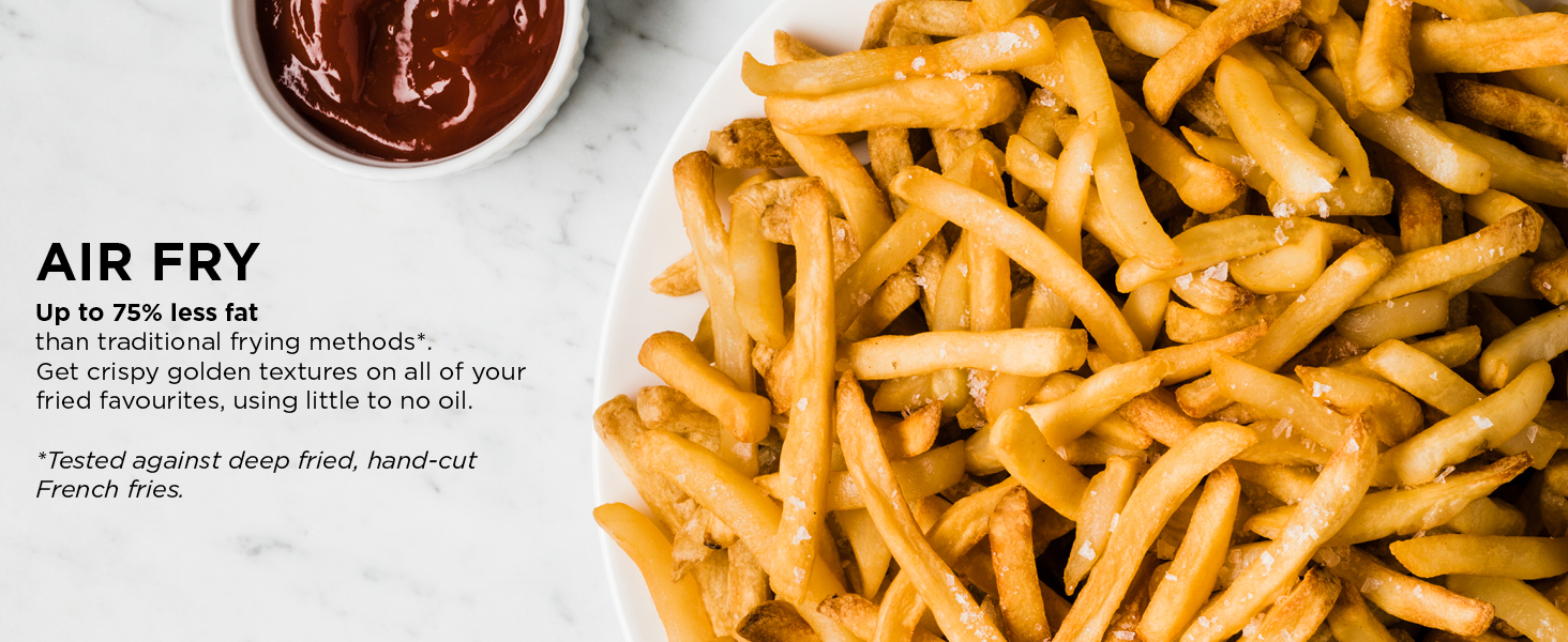 - AIR FRY USING LITTLE TO NO OIL: Up to 75% less fat than traditional frying methods* (*Tested against deep fried, hand-cut French fries.)