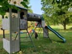 - Includes 2 Swings with Rubber Grips; Clubhouse with Hardtop Roof