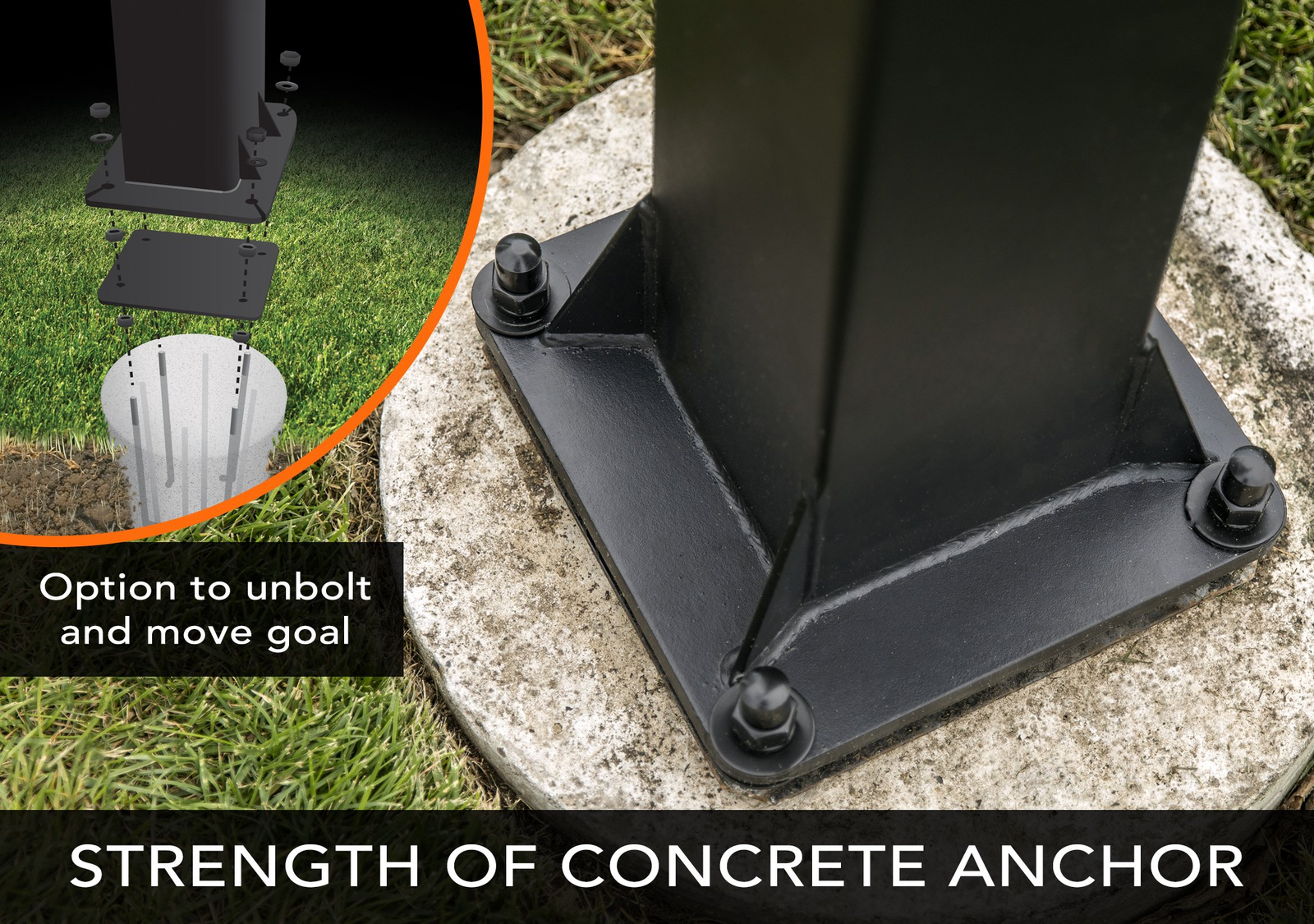 - MOVE YOUR HOOP WITH YOU – In-ground anchor system cured in concrete with the option to unbolt and move goal