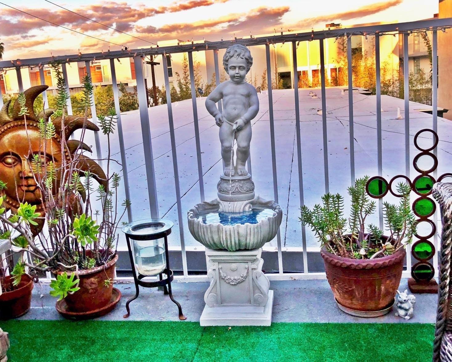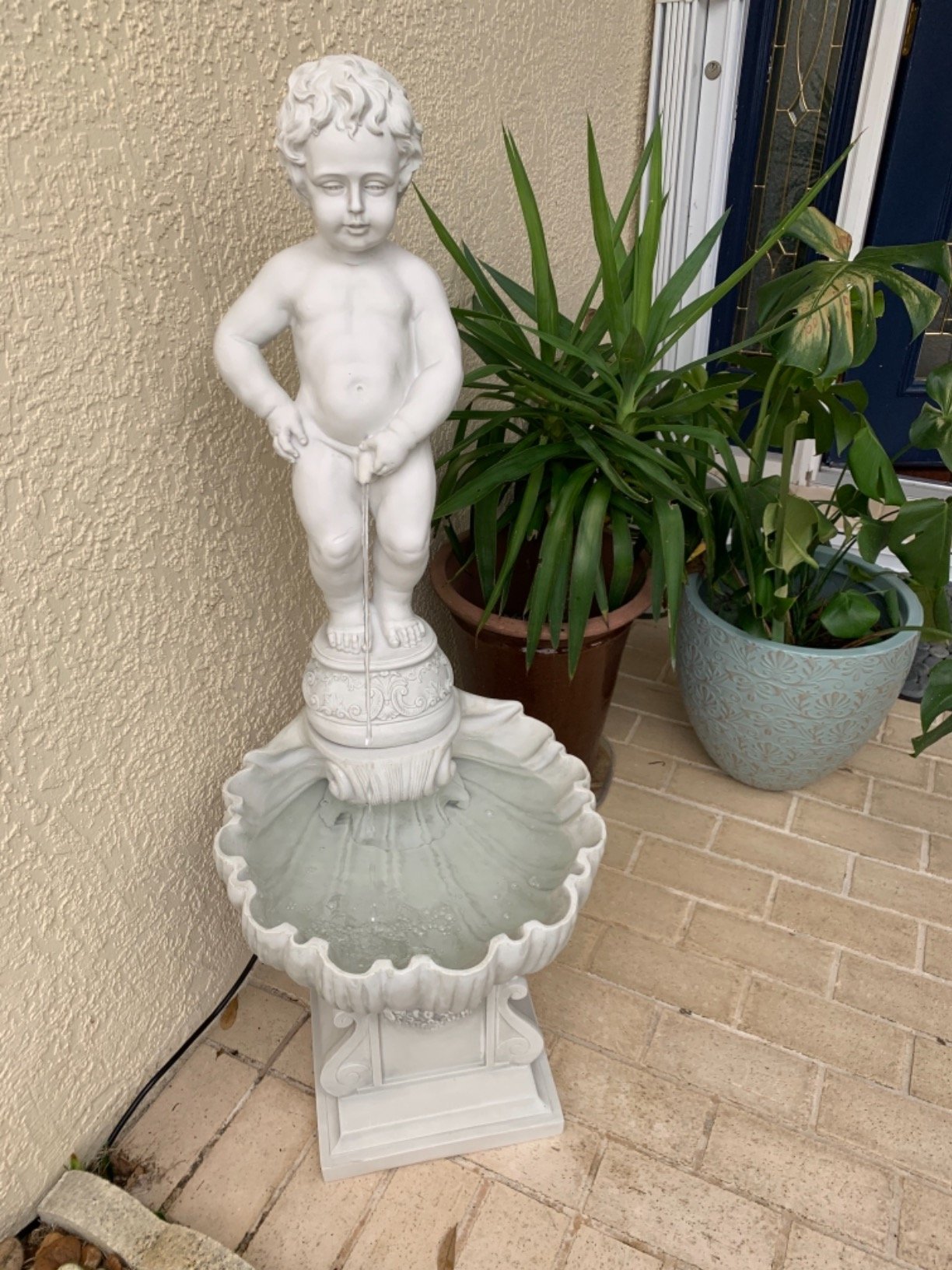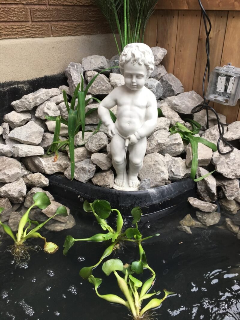 • PEEING BOY WATER FOUNTAIN – This delightful and mischievous peeing boy statue captured from Brussels, one of Europe’s most beautiful cities, will bring classic art and humor to your garden decor when placed on his included seashell basin and elevating plinth base.