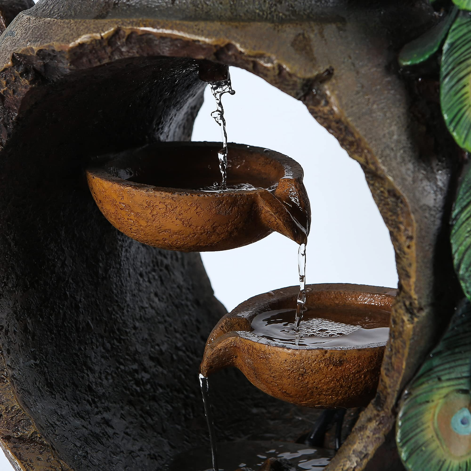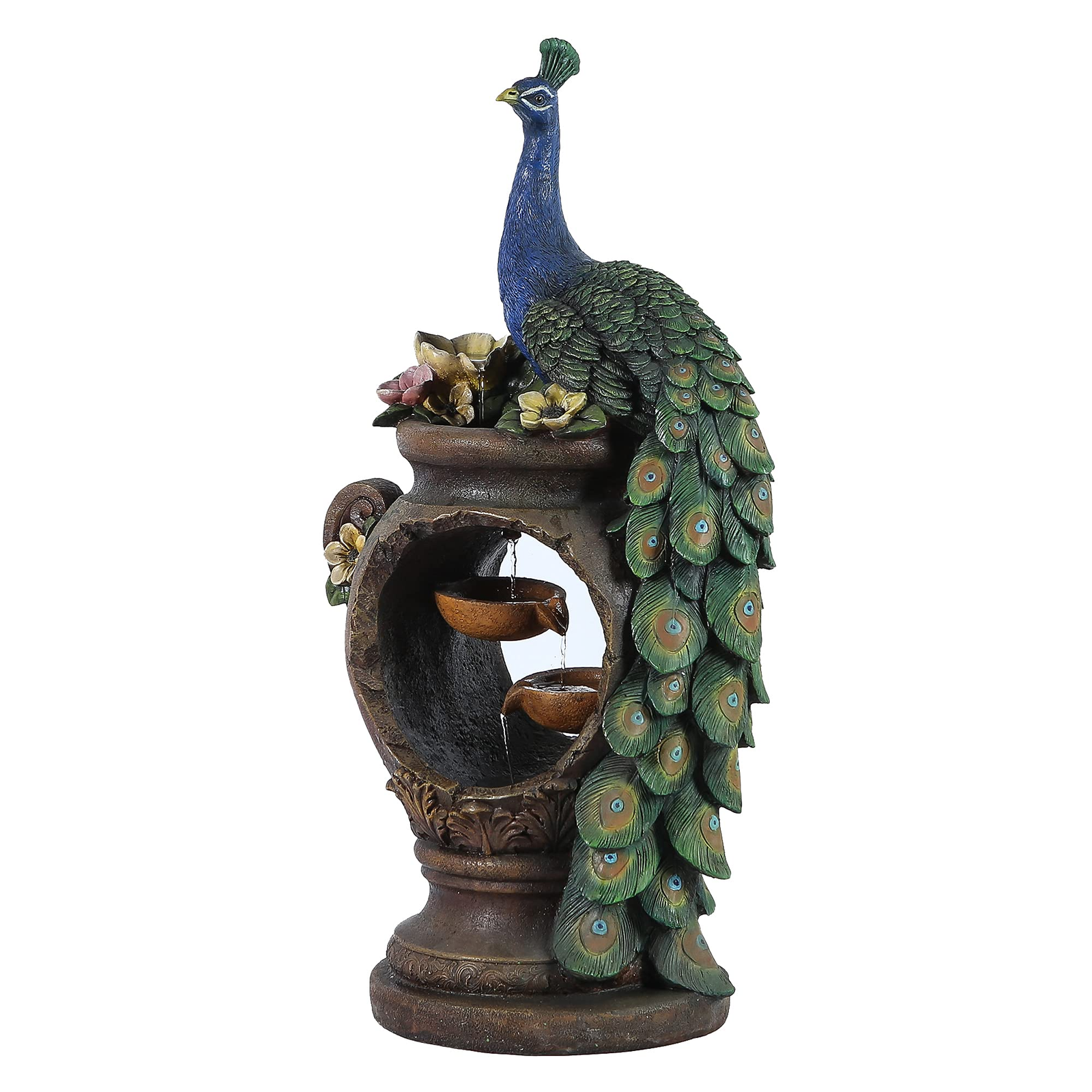 34″ Peacock and Urn Resin Patio Fountain with LED Lights