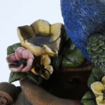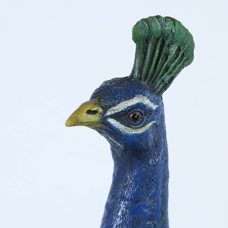 This beautiful outdoor fountain features a dazzling blue peacock with is lovely detailed tail feathers perched royally on a vintage-style urn.