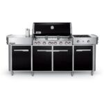 Summit propane grill center. Giving your grilling imagination some extra space to spread out with this sleek Summit grill center with striking black finish. It includes a full sized Summit E-670 grill and lots of extra cabinet space for storing all your tools and accessories.