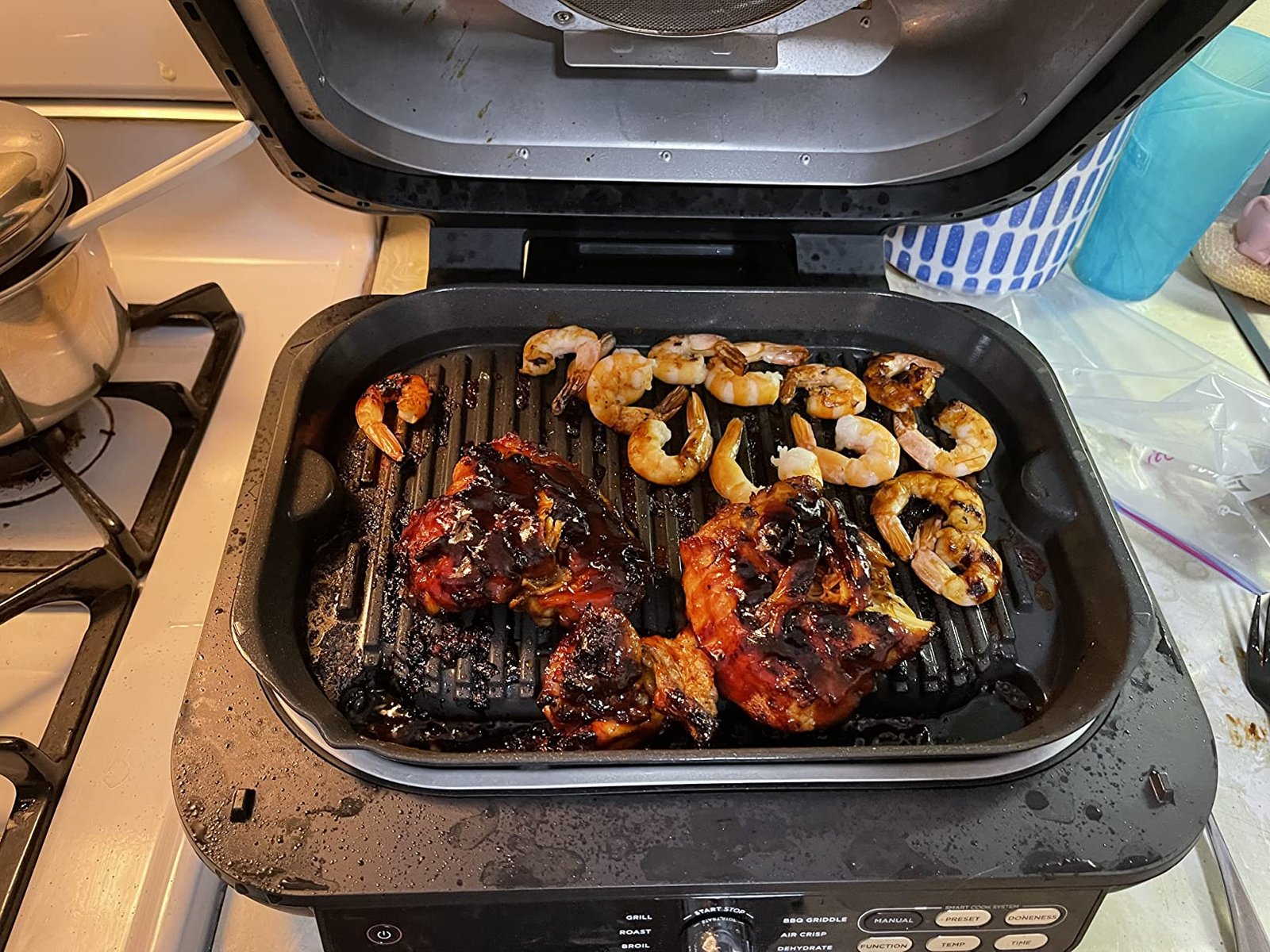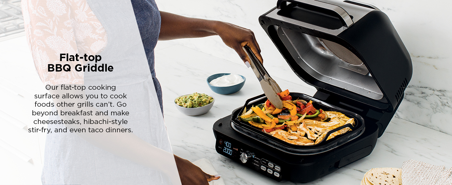 Meet Ninja’s most powerful grill*, the Ninja Foodi Smart XL Pro Grill & Griddle. With a 500F independently powered grill grate, get direct, edge-to-edge high heat for perfect char-grilled results. It even unlocks BBQ griddling to cook foods other grills can’t. Grill, griddle, air fry, and so much more all in one family-sized appliance. *Based on grill grate’s direct heating element.