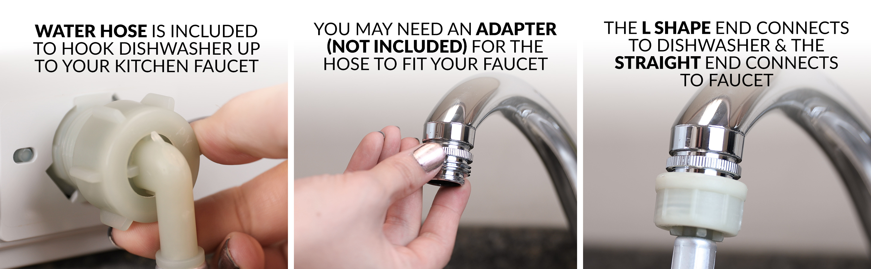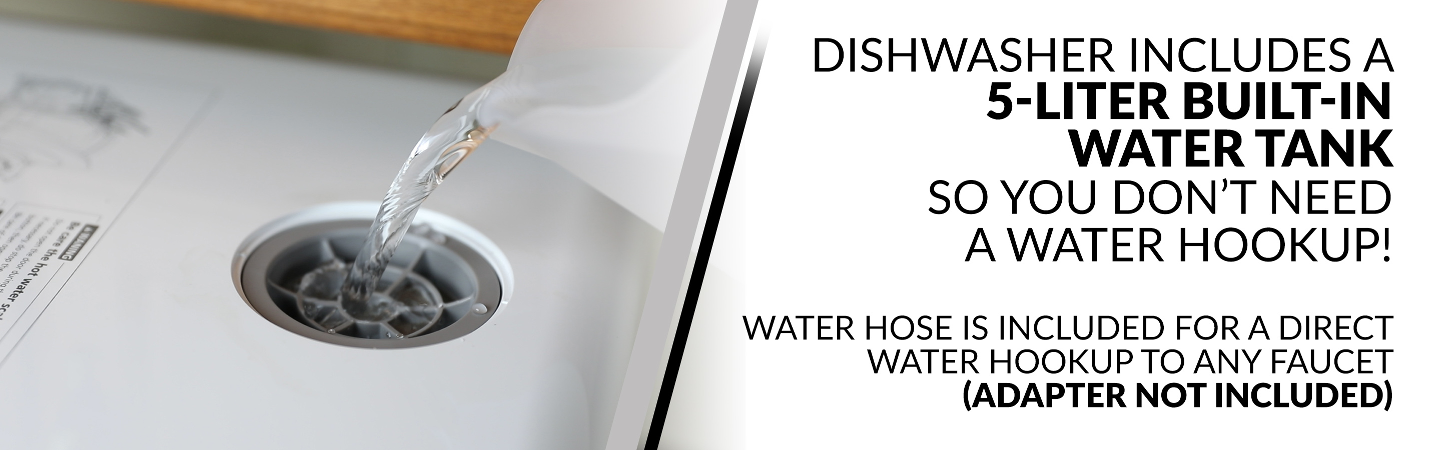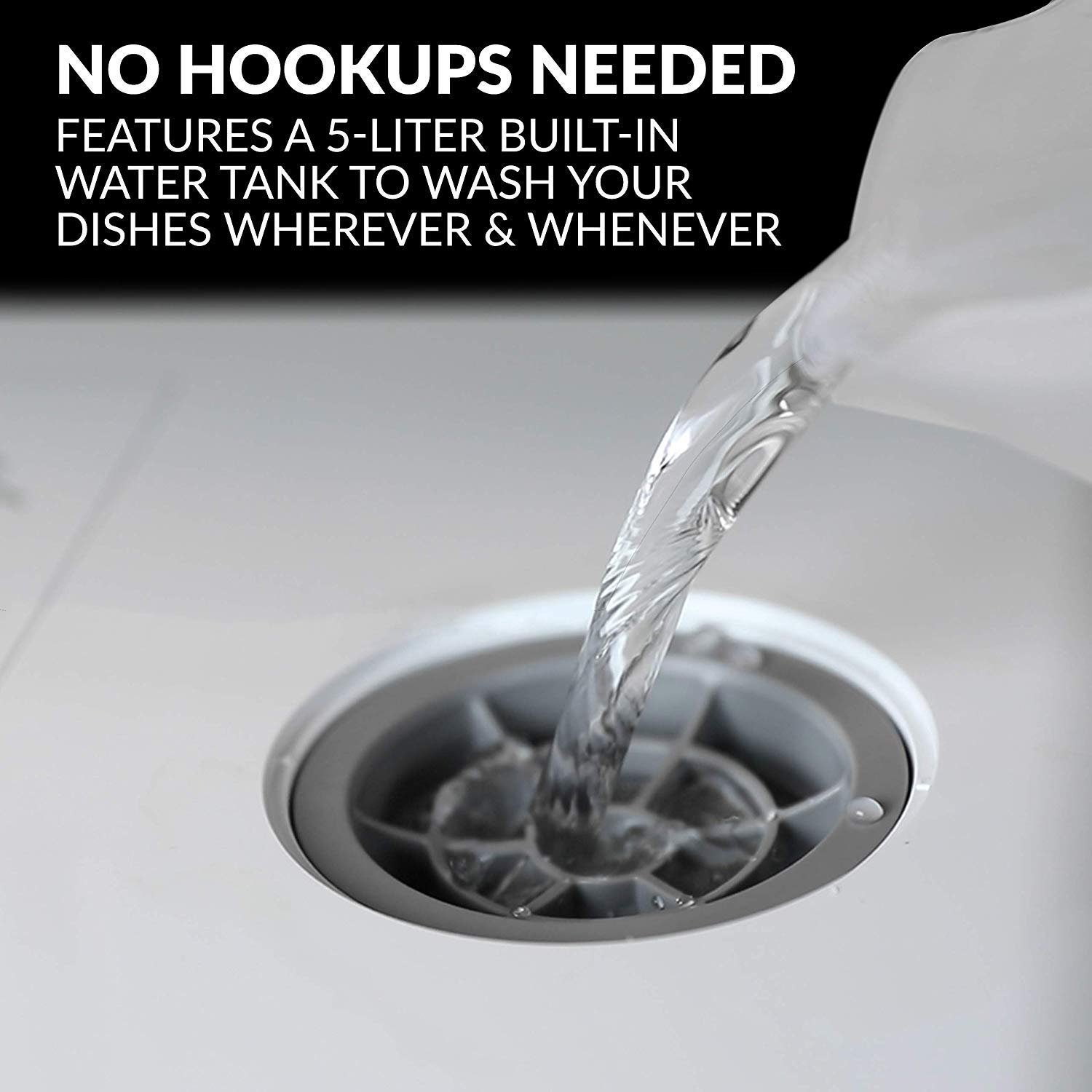 • NO HOOKUPS NEEDED: If you want the advantage of portability and storage, this dishwasher gives you the choice to fill the built-in tank so you don’t need a water hookup. Water hose is included for a direct water hookup to kitchen faucet (adapter not included)