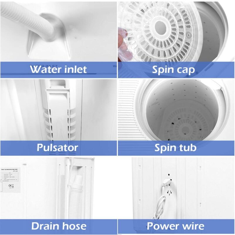 【Easy to Operate】This is our portable mini compact twin tub washing machine which is easy for you to operate. Saving so much time that you don’t have to go to the laundromat or wash things by hand in the tub.