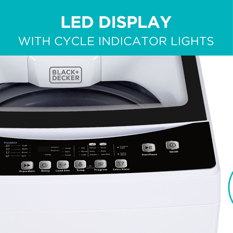 - 26.5 LBS. OF LAUNDRY PER LOAD—Wash up to 26.5 lbs. of laundry per load with this superior BLACK+DECKER best portable washer. Our portable clothes washer (23.7” x 24.8” x 39.4”) has 6 cycle selections—Normal, Heavy, Delicate, Quick, Bulky, and Spin Only. Even suitable for baby clothes, diapers, and lingerie.