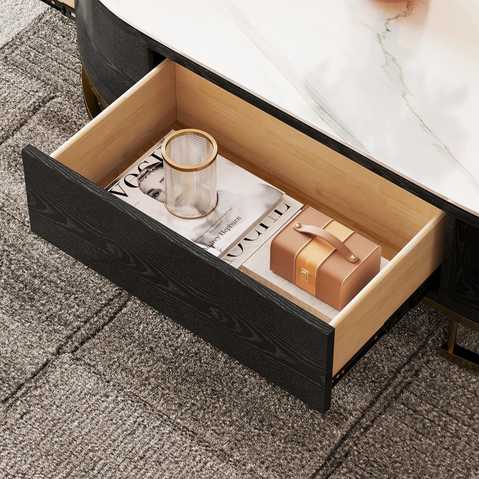 - With a large internal storage capacity, this coffee table also functions to store your clutter orderly