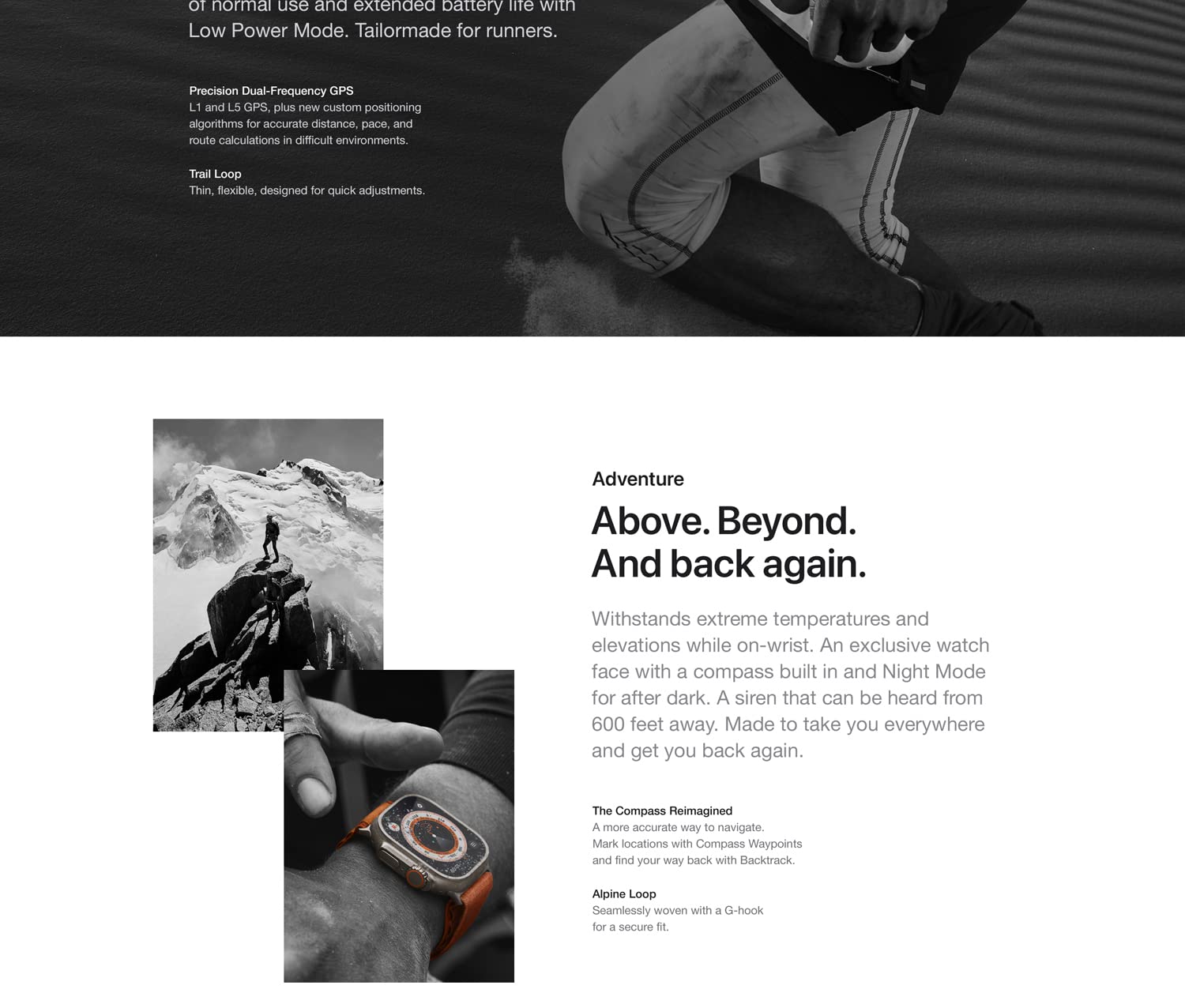 • FOR OUTDOOR ADVENTURERS — Redesigned Compass app delivers all-new views and functionality. Mark your location with Compass Waypoints. Backtrack uses GPS to map where you’ve been so you can retrace your steps. Alpine Loop band is extremely rugged and secure to meet the needs of hikers and climbers.