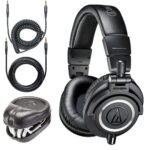 - INCLUDES – Audio-Technica ATH-M50X Professional Studio Monitor Headphones, Black, Professional Grade, Critically Acclaimed, with Detachable Cable; 1/4″ Screw-On Adapter; Carrying Pouch. Slappa Full-Sized HardBody Pro Headphone Case