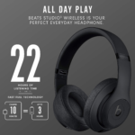 A: Studio3 can provide up to 22 hours of playback with Active Noise Cancelling (ANC) enabled or up to 40 hours with ANC disabled.