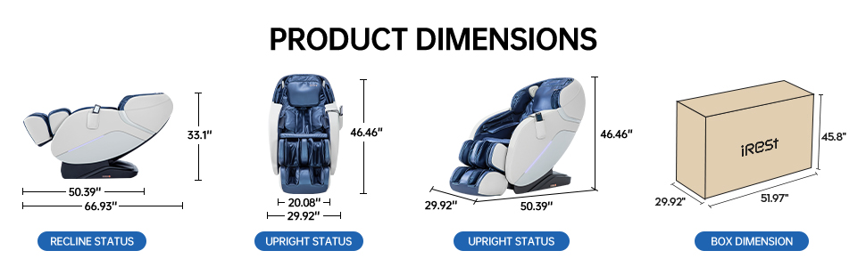 | Product Dimension | Upright status: 50.39″*29.92″*46.46″ ; Recline status: 66.93″*29.92″*33.1″ |