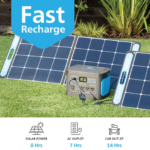 - Easy Recharge with Solar Power: Recharge from your car, AC outlet, or with the SolarPower ONE solar panel power generator. 30-second Hassle-Free Setup: Portable, light-weight foldable design with an adjustable kickstand. It takes 30 seconds or less to set up and is ready to provide eco-friendly power supply in any emergency situation.