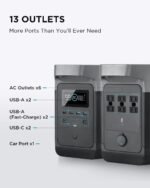 • 【Multiple Charging Outputs Provide More Options】DELTA features 6* AC outlet (100V-120V 1800W 3300W Peak), 2*USB-C port, 2* USB-A ports, 2*USB-A fast charge and 1* standard DC 13.6V port , power your smartphone, laptop, camera, drones, in-car appliances, CPAP machine, refrigerator, blender and more at anytime without worry.