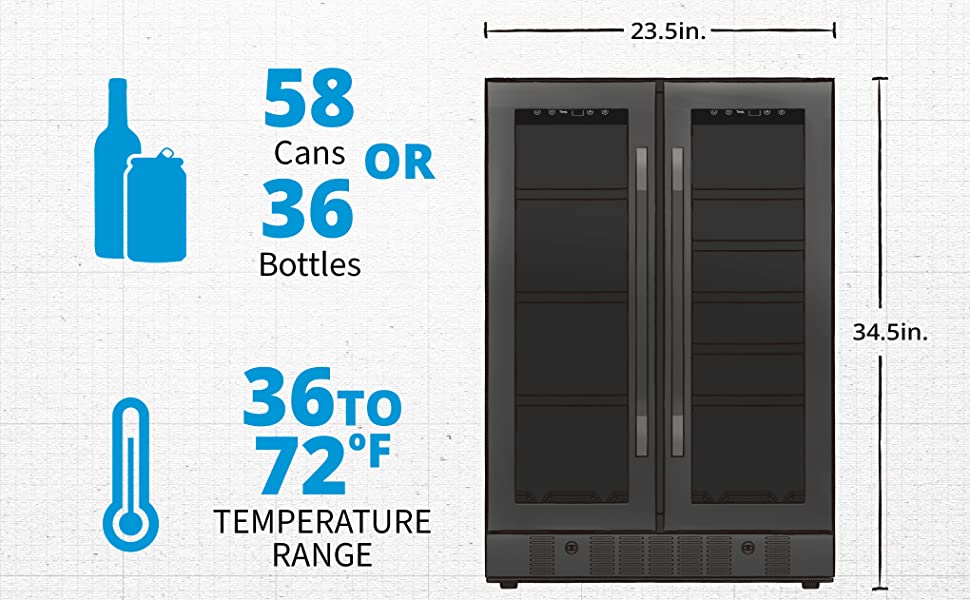 [ALL YOUR FAVORITE DRINKS IN ONE PLACE] – This dual zone beverage fridge has two side-by-side storage areas so you can keep red wine warm and carbonated drinks icy cold. Opening one door at a time lets the other side maintain its temperature for optimal storage conditions.