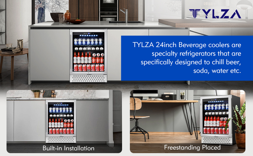 Tylza 24 Inch Built-In Beverage Refrigerator with Fashion Look, Quick and Silent Cooling System