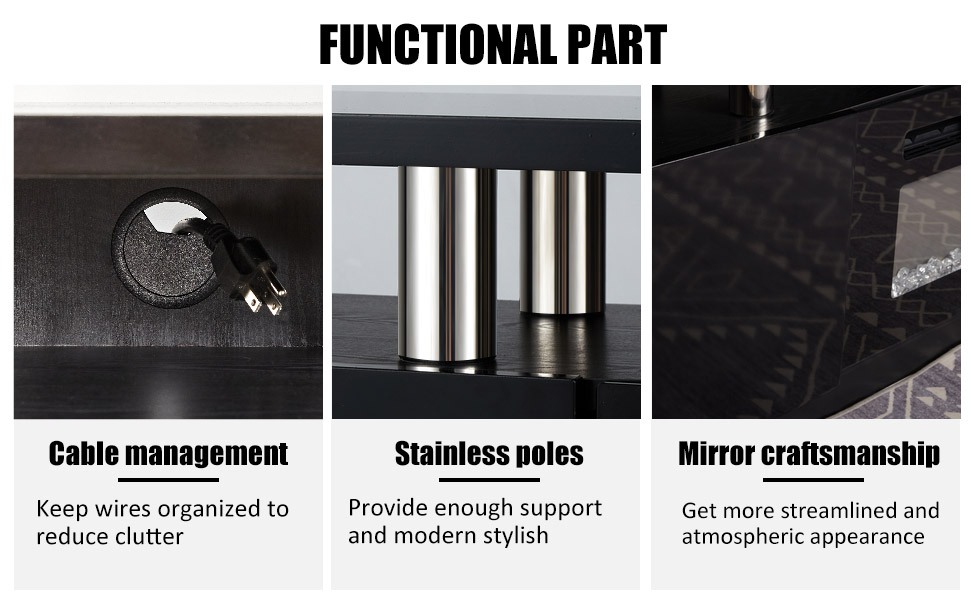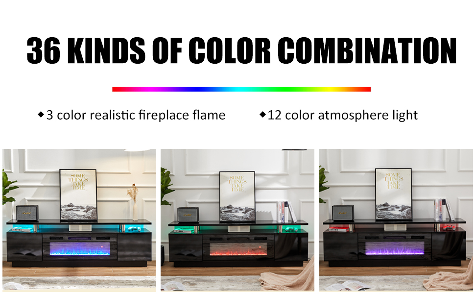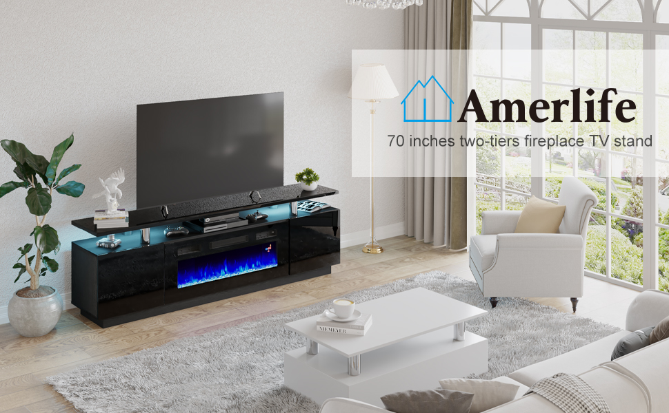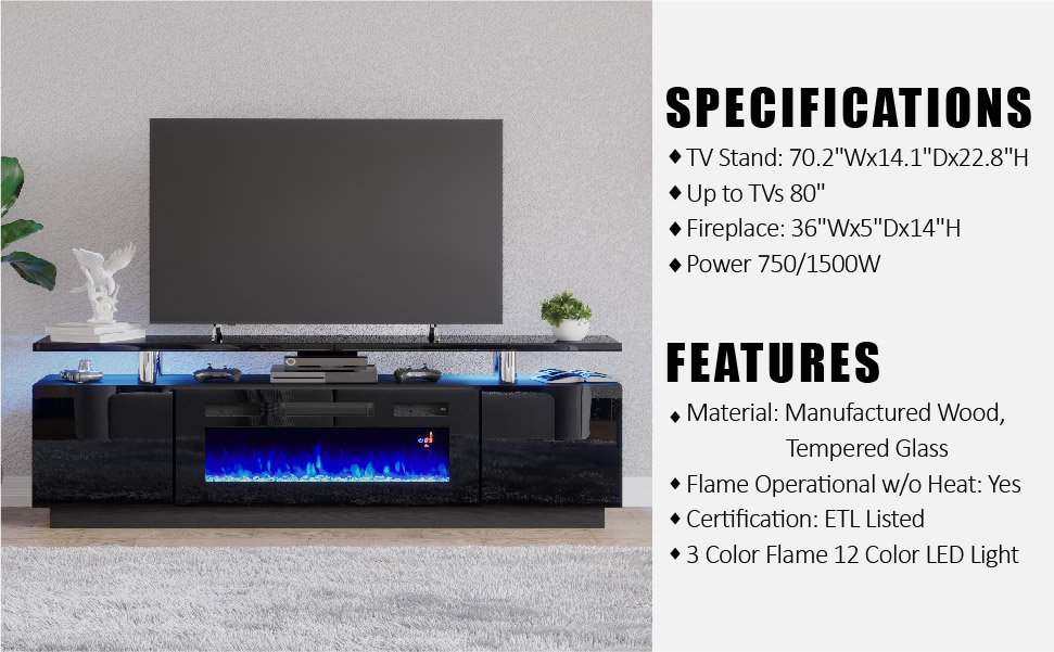 | Special Feature | 70″ Modern High Gloss, Adjustable Flame&LED, Temperature Control & Time Setting, 36″ Electric Fireplace, 2 Tier Design |